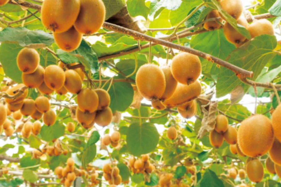 およそ10ヘクタールの農園にいろいろな品種のキウイフルーツが栽培され、キ...