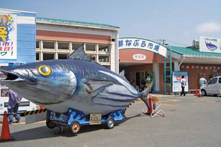 「なぶら」とはカツオの群れのことを指します。活気溢れる市場らしい雰囲気の...