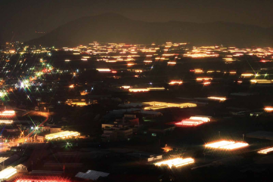 田原市 赤羽根文化の森から見る 電照菊の風景