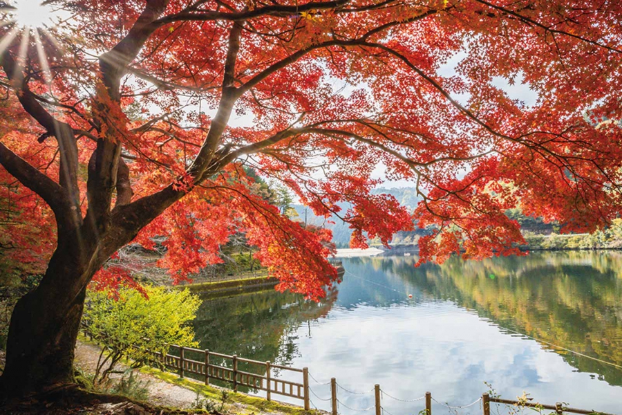 伊自良湖は周囲約2.4キロメートルに54万トンの水量をたたえた美しい人造...