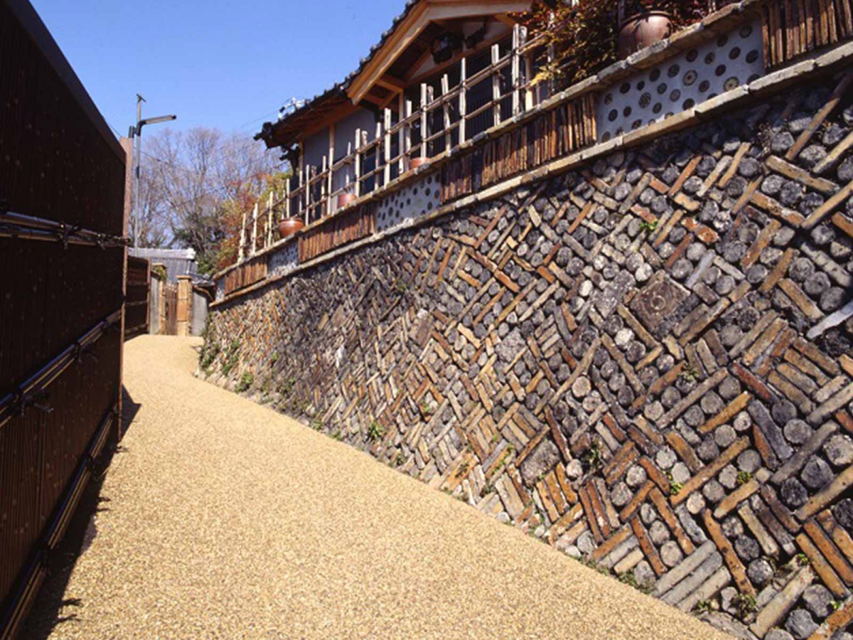 「窯垣」とは、昔使われていた窯道具を積み上げて作った塀や壁の呼称で、全国でも瀬戸でしか見られない景色です。幾何学模様が美しい窯垣が約400mの続く「窯垣の小径」周辺は、現在でも窯屋さんの邸宅が建ち並んでいます。