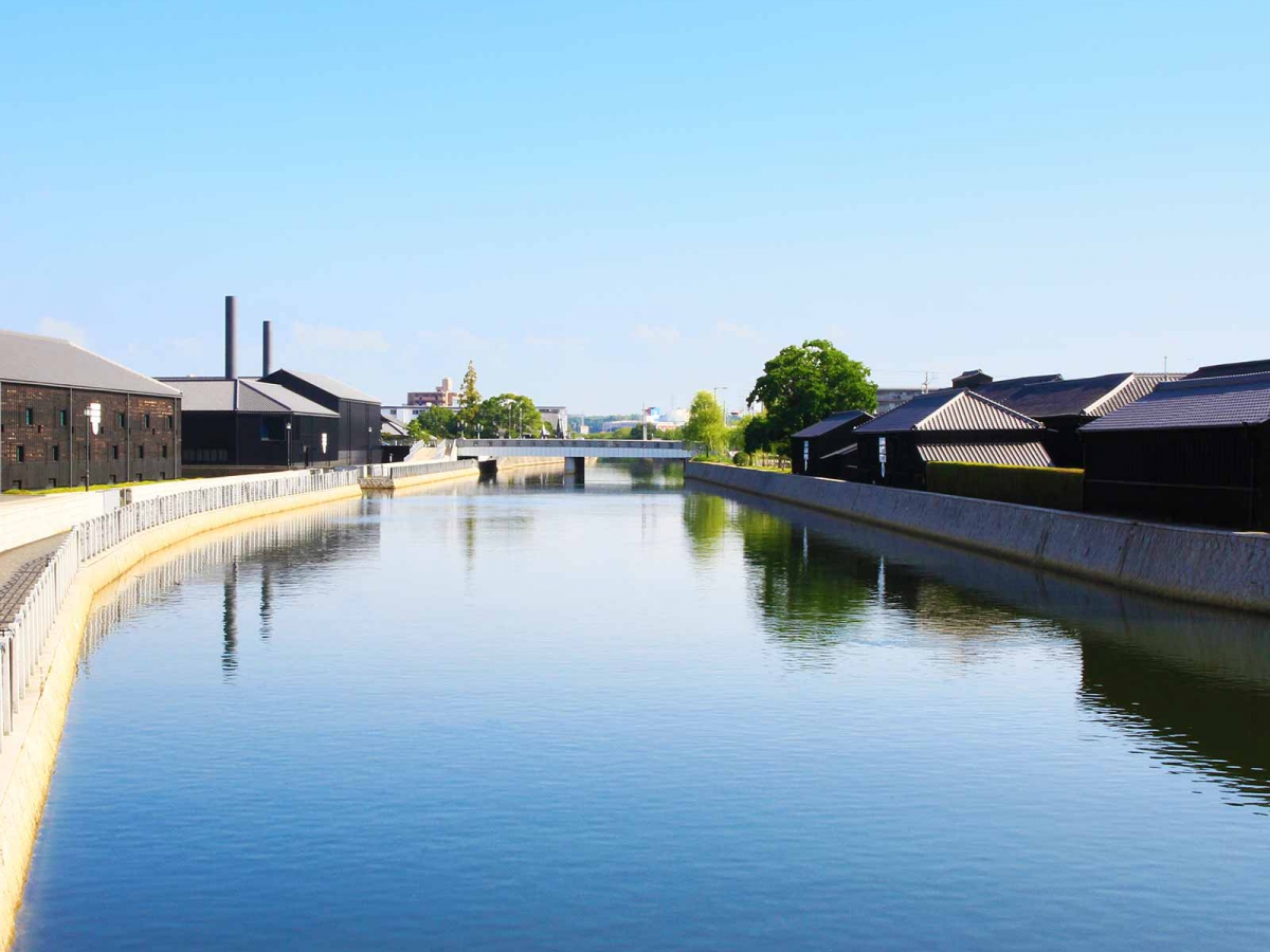半田の町は、江戸時代前期から酒や酢を中心とした醸造業で栄え、半田運河は知多半島の産物を江戸や大阪などに運ぶため活用されていました。その醸造業に代表される黒板囲いの蔵が半田運河沿いに今も現役で活躍しており、昔ながらの蔵と運河と街並みが見られる絶好のスポットです。