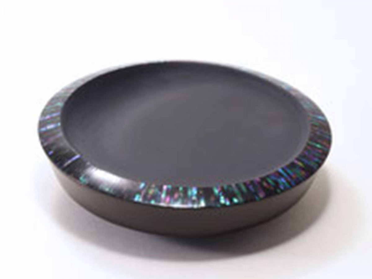 鳳来寺山で採れる金鳳石は、黒色金銀星を有しており、特に唐墨での発磨墨の妙味は、日本硯で右に出るもの無しと云われています。鳳来寺山の表参道にて硯専門店を営む硯作家・五代 名倉鳳山氏の工房見学を推薦いたします。