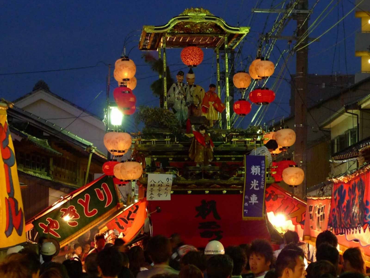 からくり人形を載せた五輌の山車の勇壮な曳きまわしが披露され、演ずる人形の技には、沿道の見物人から盛んな拍手が送られます。また、美濃路沿いには200以上の露店が並び、土曜日の夜には花火が打ち上げられ、地元住民の方はもちろん、市外からも多くの方が楽しみに来られる清須市の一大イベントのひとつとなっています。