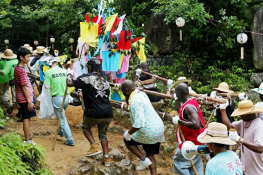 古来より五穀豊穣、家業繁栄、開拓の租神として崇められており、特に大同二年(807)に編纂された古典『古語拾遺-御歳神の条-』の故事に基づいて男茎形を奉納し祈願する俗習があり、「産むは生む」に通じて、恋愛、子宝、安産、縁結び、夫婦円満、等の平癒の守護神として崇敬を受け、また世界各国の人々から注目される神社です。
