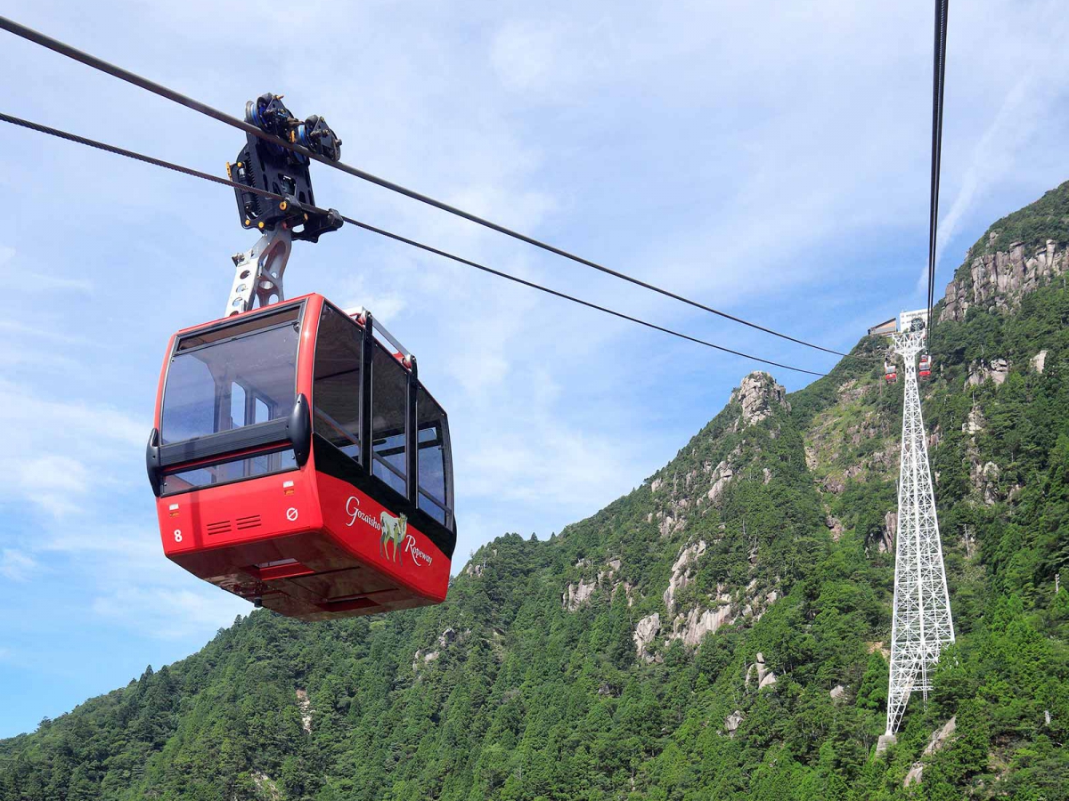 ふもとの湯の山温泉街と標高1,212mの御在所岳山上を結ぶロープウエイで、約15分間の空中散歩を楽しめます。春は花、夏は涼、秋は紅葉、冬は樹氷と四季折々の魅力も満載です。ゴンドラ内や山上の展望台からは、伊勢湾・知多半島方面まで望める大パノラマの絶景が広がります。