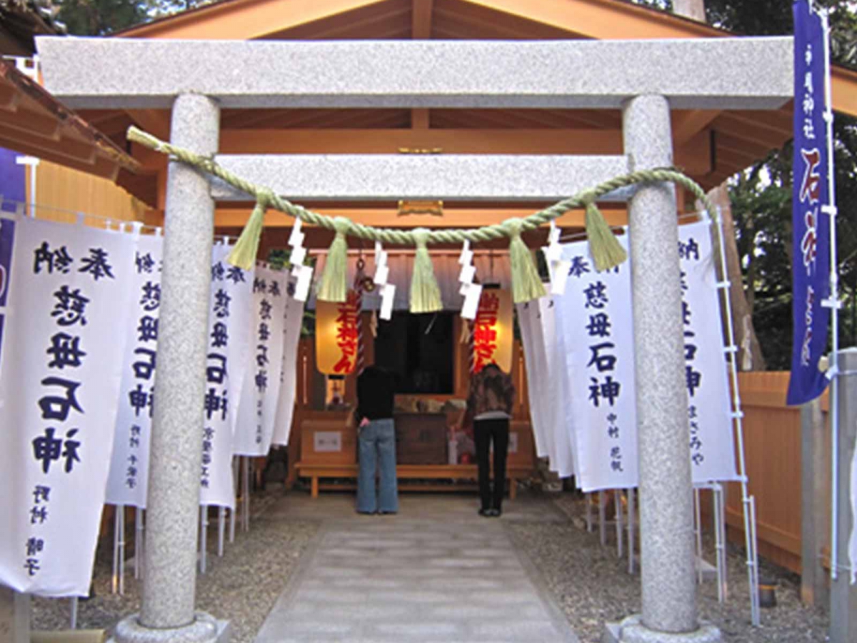 神明神社の末社「石神さん(石神社の神様)」は昔から「女性の願いを1つだけ叶えてくれる」と言われている石の神様です。石神さんは、芸能人やスポーツ選手がお忍びで通うことでも知られています。