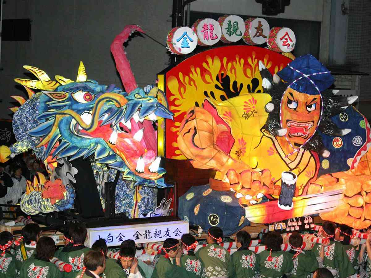 春日神社、神明神社、貴船神社の例祭を中心とした刀都の春を彩るお祭りです。「あんどんみこしコンクール」では地元の自治会や子供会、事業所などが制作したみこしが夜の街を練り歩き、幻想的な雰囲気を感じることができます。審査会場付近では渾身のからくりを披露したり、シャボン玉や煙の噴射などの仕掛けを披露したりと、一番の見どころを楽しめます。