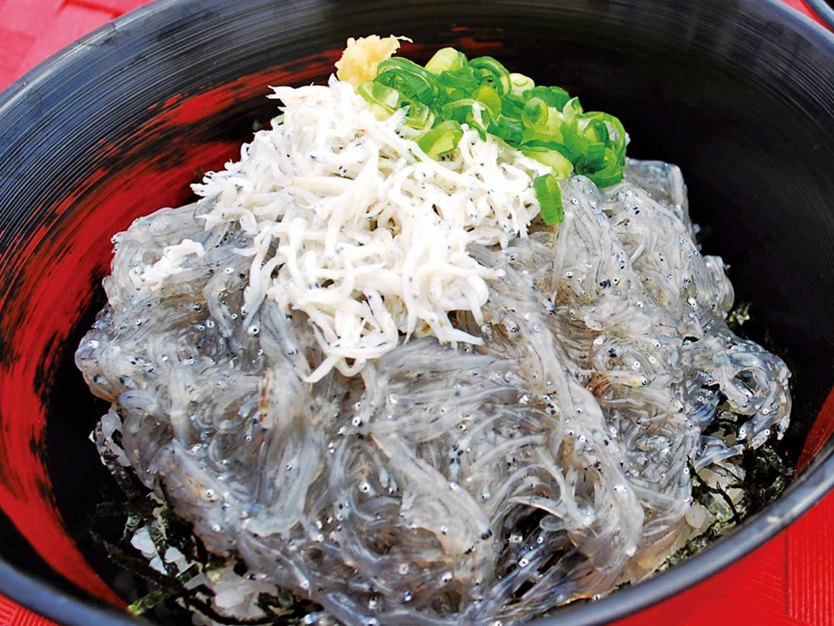 田子の浦しらすの生しらすを食べたら、もう他では食べられないほど新鮮でぷりぷりの食感が最高。その秘密は一艘曳きという漁法で他地区の二艘曳きに比べて漁獲量は少なくなりますが、網にも工夫を凝らし、しらすを傷つける事なく選別された良いしらすを短時間で素早く水揚げしています。港や船を眺め、潮風に吹かれながら食べるしらすは格別!!