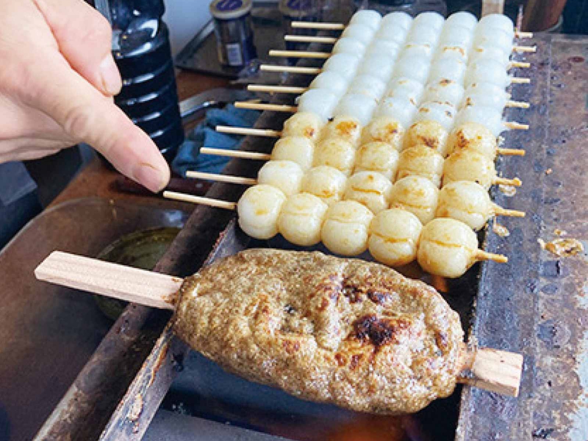 米粉またはご飯をすりつぶしたものを小判型に成形し、味噌だれなどをつけて香ばしく焼いたものです。お店ごとに独自の米の種類や配合、たれの味付けのこだわりがあり、飛騨地域では、たれの特色として荏胡麻(飛騨では「あぶらえ」と言われています。)味噌の五平餅が最も親しまれています。