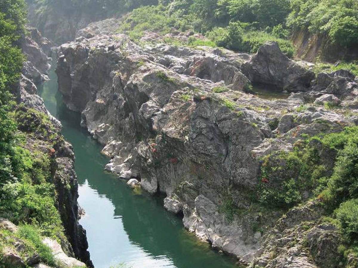 1963年3月3日に飛騨木曽川国定公園に指定された飛水峡。切り立ったV字谷と国の天然記念物であるポットホールが無数あるのが特徴で、その絶景に心奪われること間違いなしです。